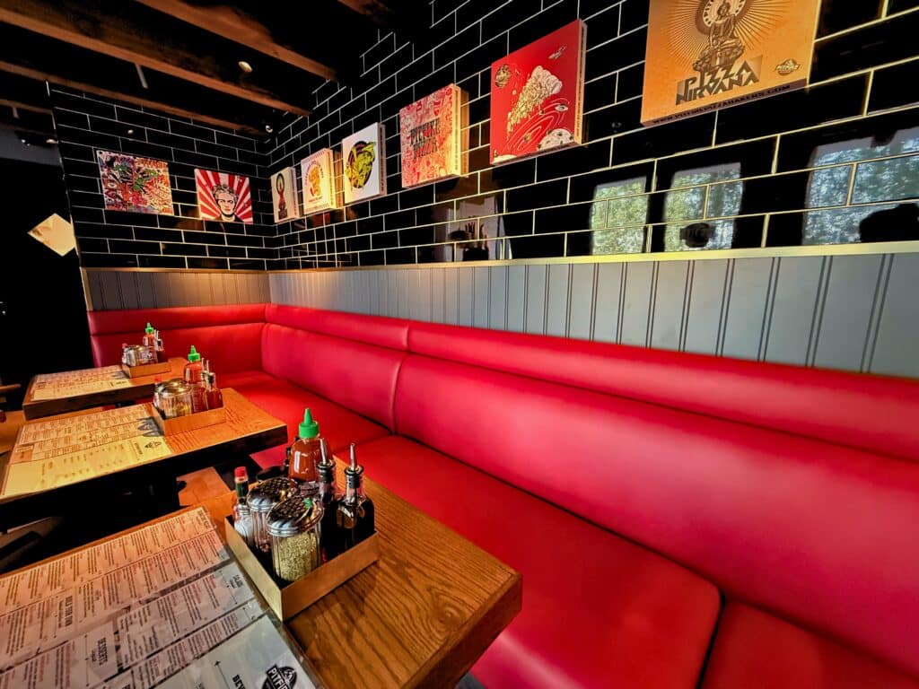 The interior of the JVC branch stays true to Pitfire Pizza’s signature rustic charm. The space features cozy booths with wooden tables and comfortable seating, framed by Pitfire’s iconic art wall. The vibrant colors and bold details bring a creative, playful energy to the space that feels unmistakably Pitfire. Whether dining indoors or on the terrace, guests are welcomed into a relaxed setting created for both everyday meals and memorable moments.