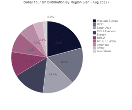 - Western Europe remained Dubai’s largest source market for international visitors, accounting for more than 1 in 5 (21%) of arrivals – and recording year-on-year growth of more than 12%